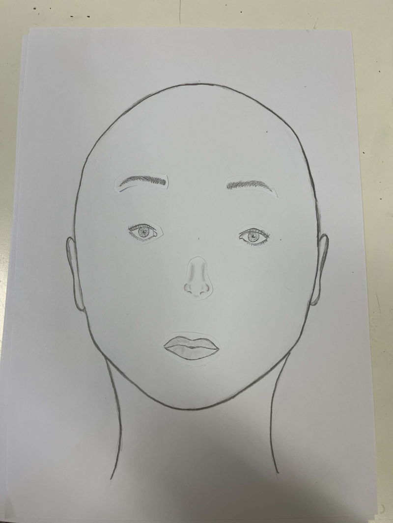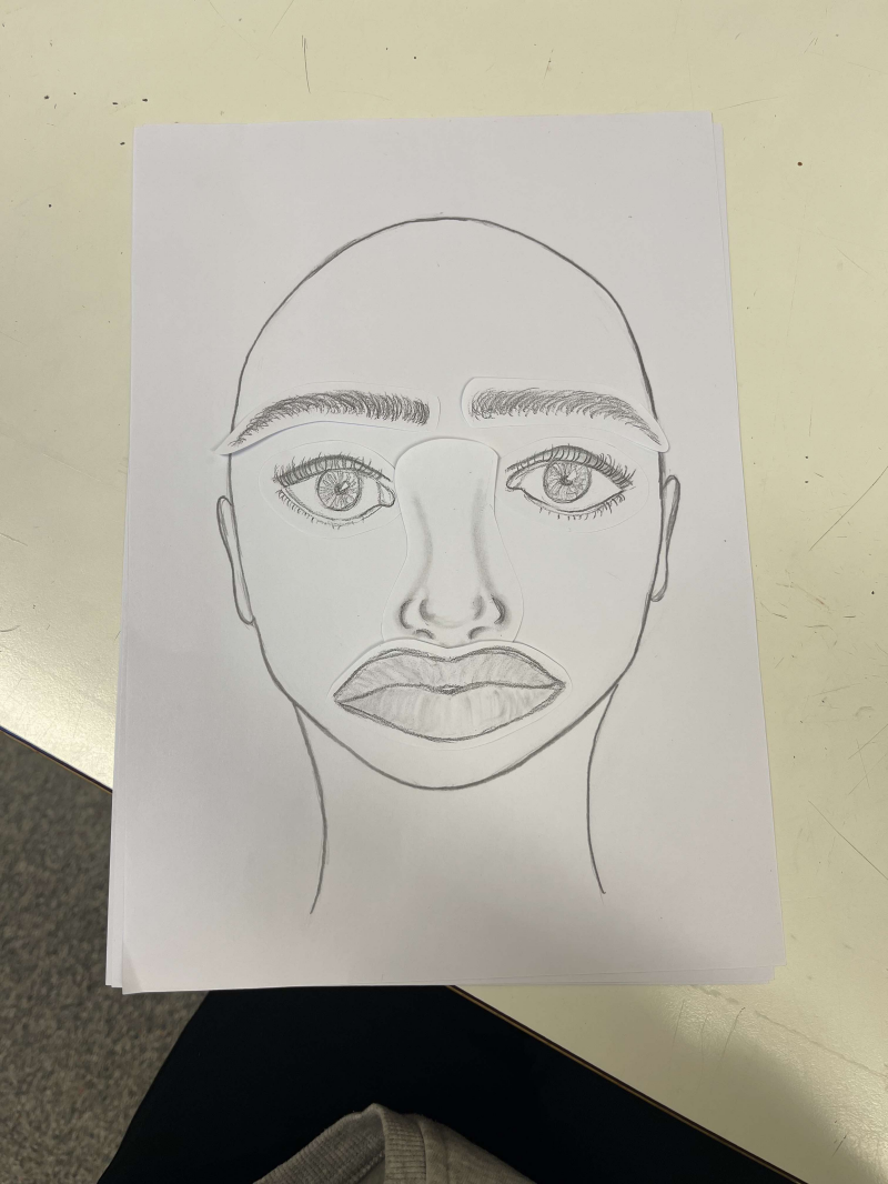 Du ska få klistra in rätt storlek på ögon, näsa, mun och ögonbryn på rätt plats i ett ansikte!