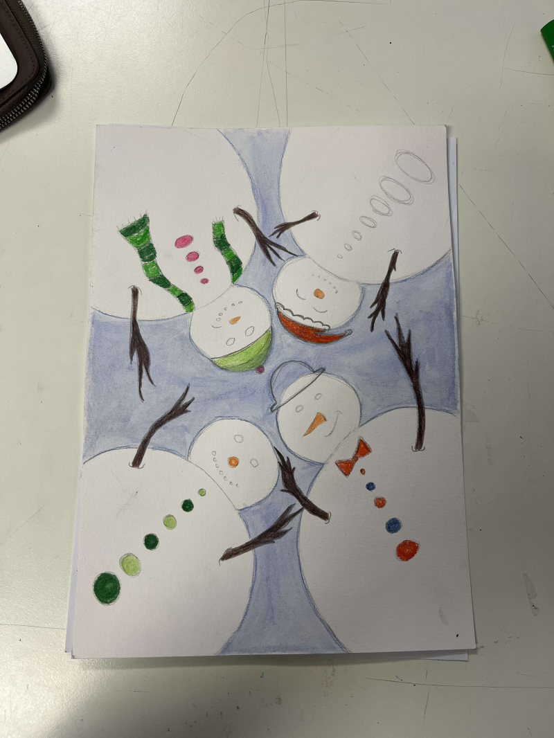 Ge din snögubbar ansikten. Skissa hattar, halsdukar, knappar och morötter som näsor.